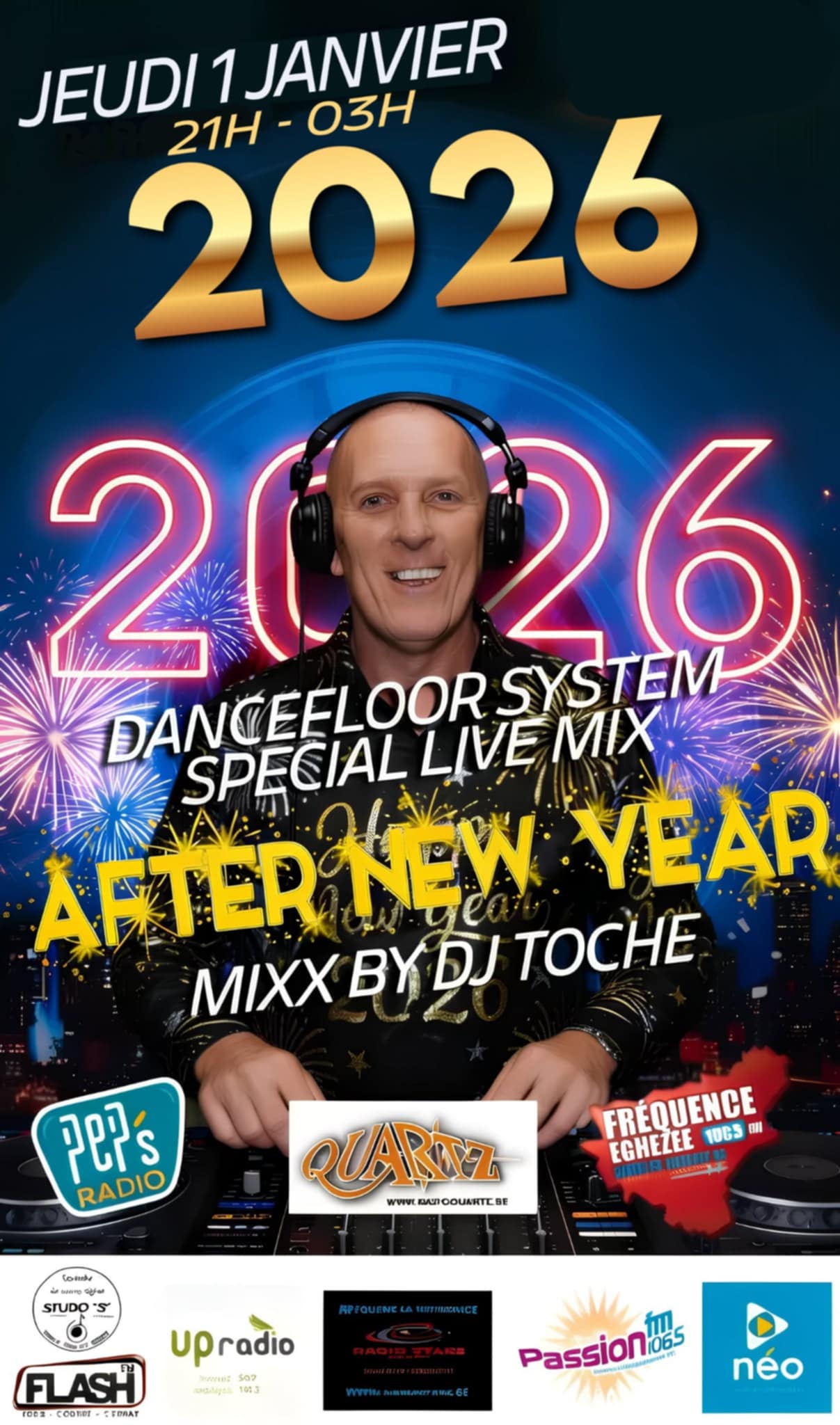 Ce jeudi 1er janvier 2026 de 21 à 03h en direct sur Radio Quartz et également en vidéo sur https://www.twitch.tv/dancefloor_system